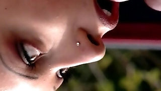 Dark-haired 22 Jahre Piercings hat Ihre erste Zeit vor der Kamera und zieht es durch
