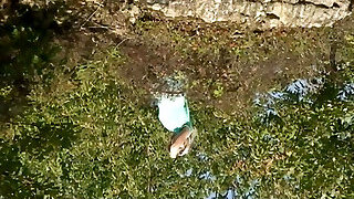 Glorious German teenager loves pissing in the outdoors after shaving her mans cock