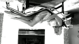 Adorable classic blonde milky babe on the lounger poses on cam