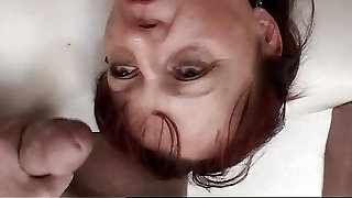 Great looking German babes deep-throating and taking a hard pecker on the couch