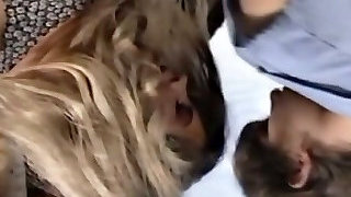 Gorgeous platinum-blonde milf with sunglasses feels horny for a young country girl