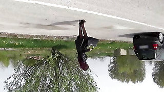 A super buxom German brunette gets her muff hammered outdoors