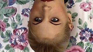 Nerdy German teenage puts a bottle in her coochie and receives her first facial - 80's retro