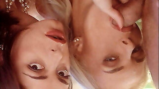 2 amazing looking German sluts sharing a hard rod outdoors